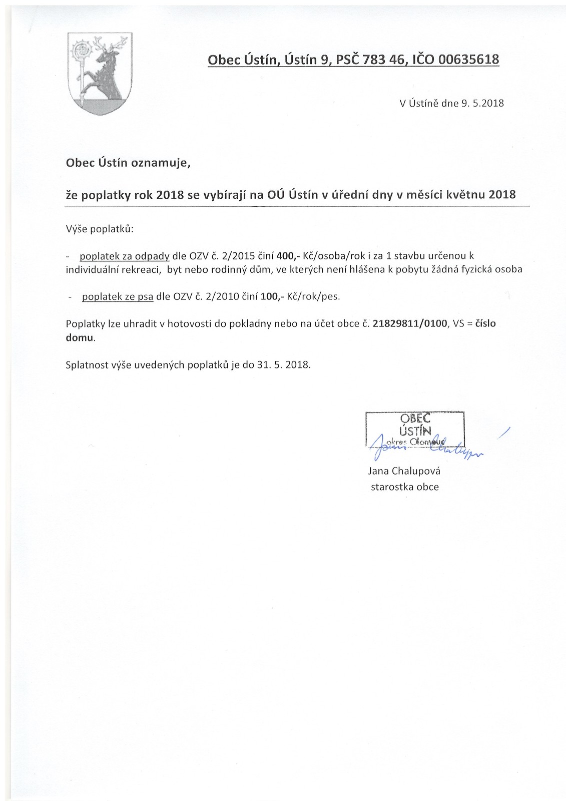 Úvod > Život v obci > Aktuality > Poplatky na rok 2018